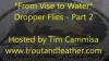 As part of the "From Vise to Water" series, in Part 2 of my Dropper Flies videos, the discussion revolves around dropper as part of a tandem rig.