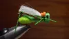 An very effective sedge imitation. A roof wing of textured plush craft foam tied sits on top of an underwing of ghost fibre.
