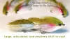 The Sophia Shrimp is tied with fluorescent pink thread, organza and spectra flash over a transparent and reflective underbody of elastic bead cord and pearl tinsel designed to catch the light, boun