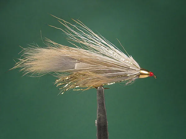 Size 4 natural brown Zuddler with dubbed body, gold tail and underwing and 5/32" gold cone.