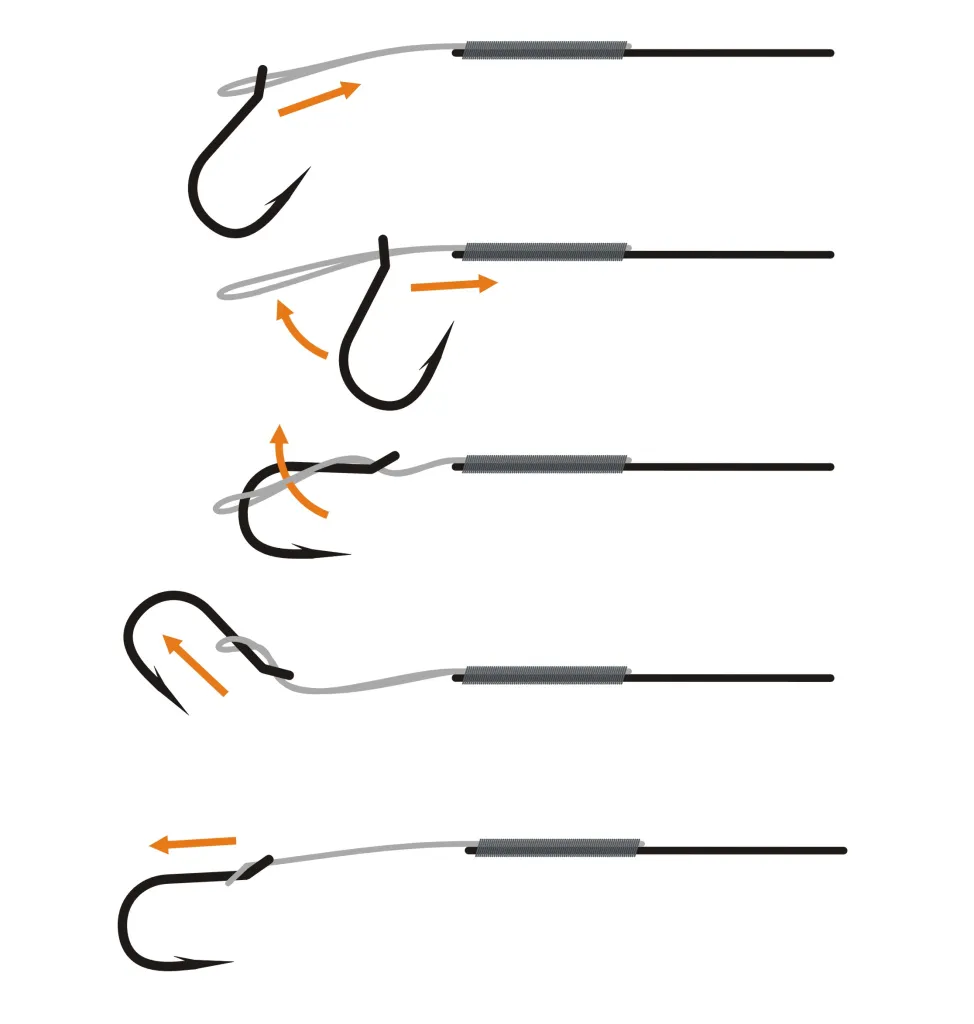 Mounting the hook after the fly has been tied: slip the wire loop through the hook eye and over the bend. Pull tight and the hook is secure.
