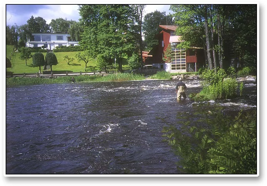 Fishing pool 1 can be a strange experience. The pool is located in a park like environment. Fishers are sometimes countless as are spectators. The Salmon's house (Laxens Hus) is seen right in front of me (to the right), and locals and tourists are constantly walking by.