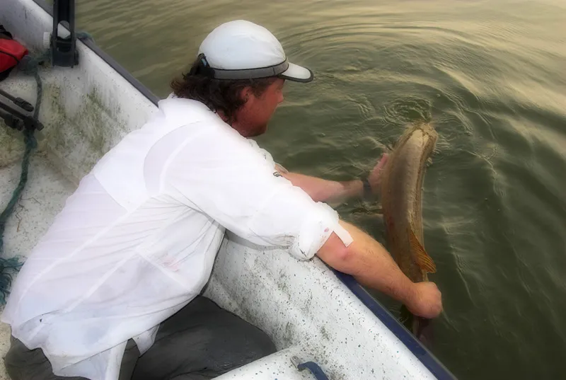 When releasing large pike in warm water, make sure that they are able to swim away by themselves before letting them go.