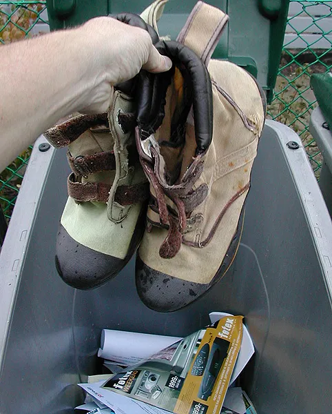 The last journey for a pair of wading boots: into the waste. These are definitely beyond repair.