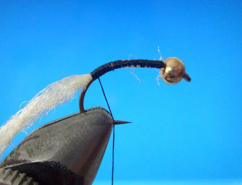 Tie the Creamy yellow Antron yarn at the bead and cover it back to the curve of the hook