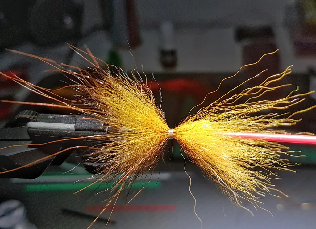 Tie in the hair snug to the rear disc, making sure it's distributed all around the tube and flares nicely.