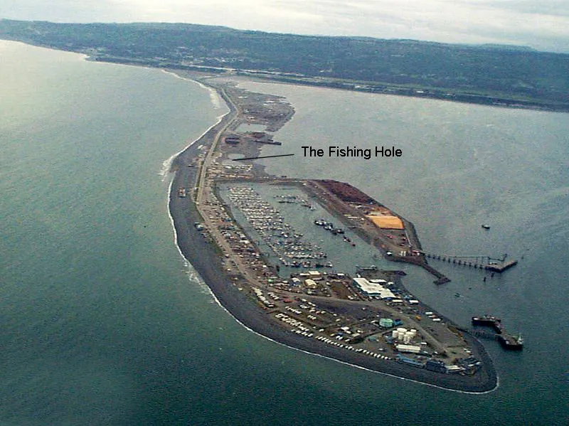 A view of the Spit from the tip towards the town of Homer (this is an open source photo from the US Army Corps of Engineers, found on Wiki).