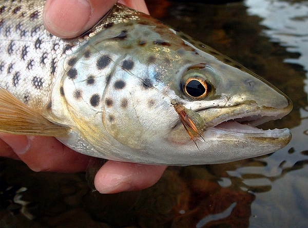 Trout caught on a Sparkle Pupa - RÃo San Pedro - Los Lagos region - Chile - Trucha marron capturada con una mosca Sparkle Pupa - RÃo San Pedro - Décima región de Los Lagos - Chile